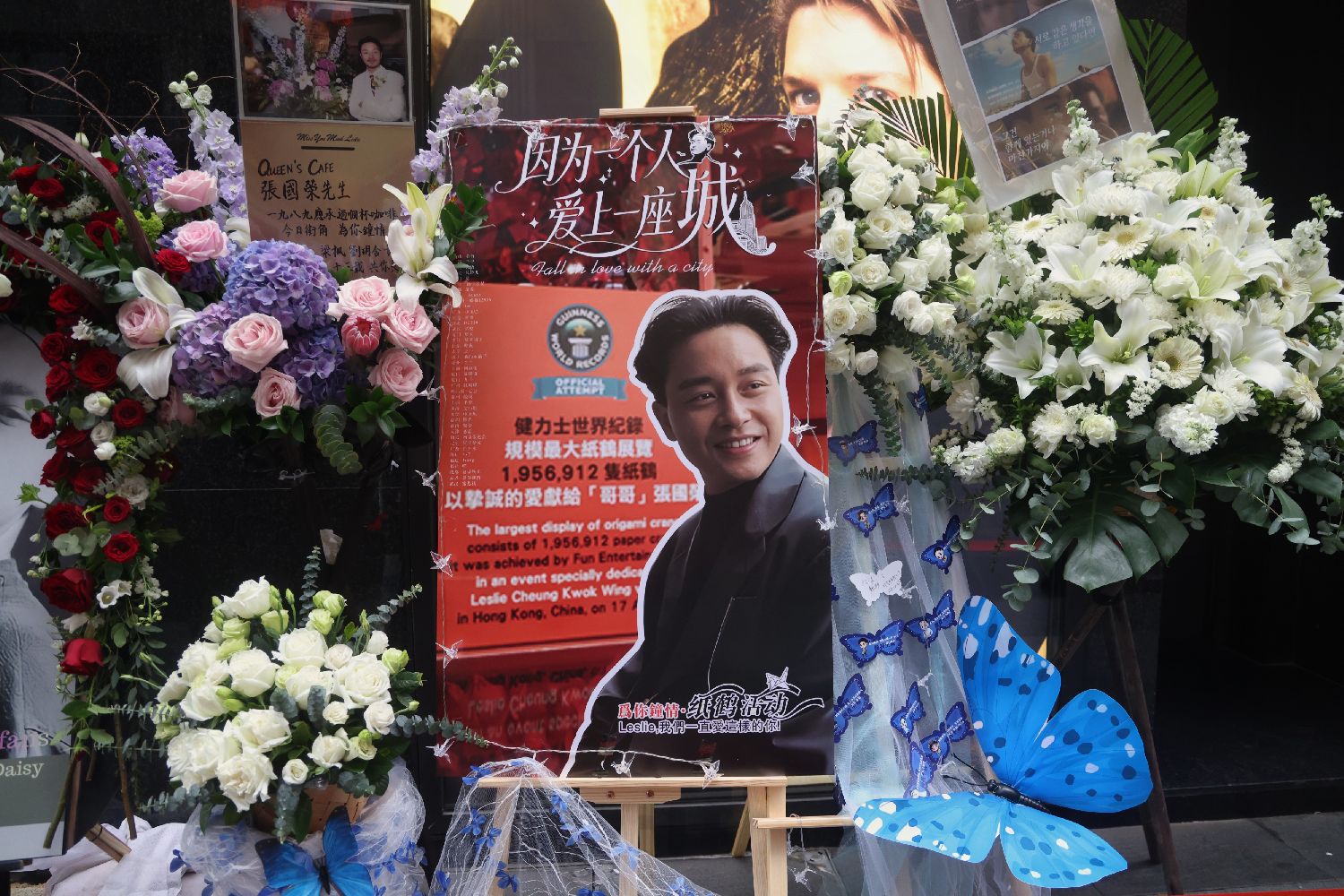 3月31日,香港文华东方酒店外人行道摆满鲜花、花牌与纪念展板,用以纪念张国荣逝世23周年。尽管正式忌日为4月1日,已有部分市民和来自各地的歌影迷提前抵达现场并拍照悼念。