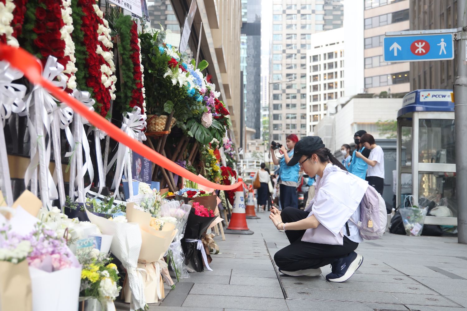 尽管正式忌日为4月1日,已有部分市民和来自各地的歌影迷提前抵达现场并拍照悼念。(香港中通社)