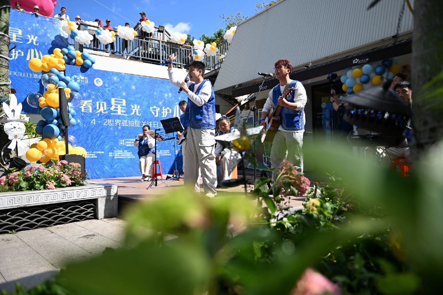 “速度七十迈,心情是自由自在……”4月1日,在福建省福州市鼓楼区一家名为“星点心愿”的茶咖饺子店里,患有孤独症的青年江宇森抱着吉他自信弹唱,歌声清亮。店内蓝色气球摇曳,一场为迎接4月2日世界孤独症关注日举办的主题倡导活动,让这群“星星的孩子”再次成为温暖焦点。
