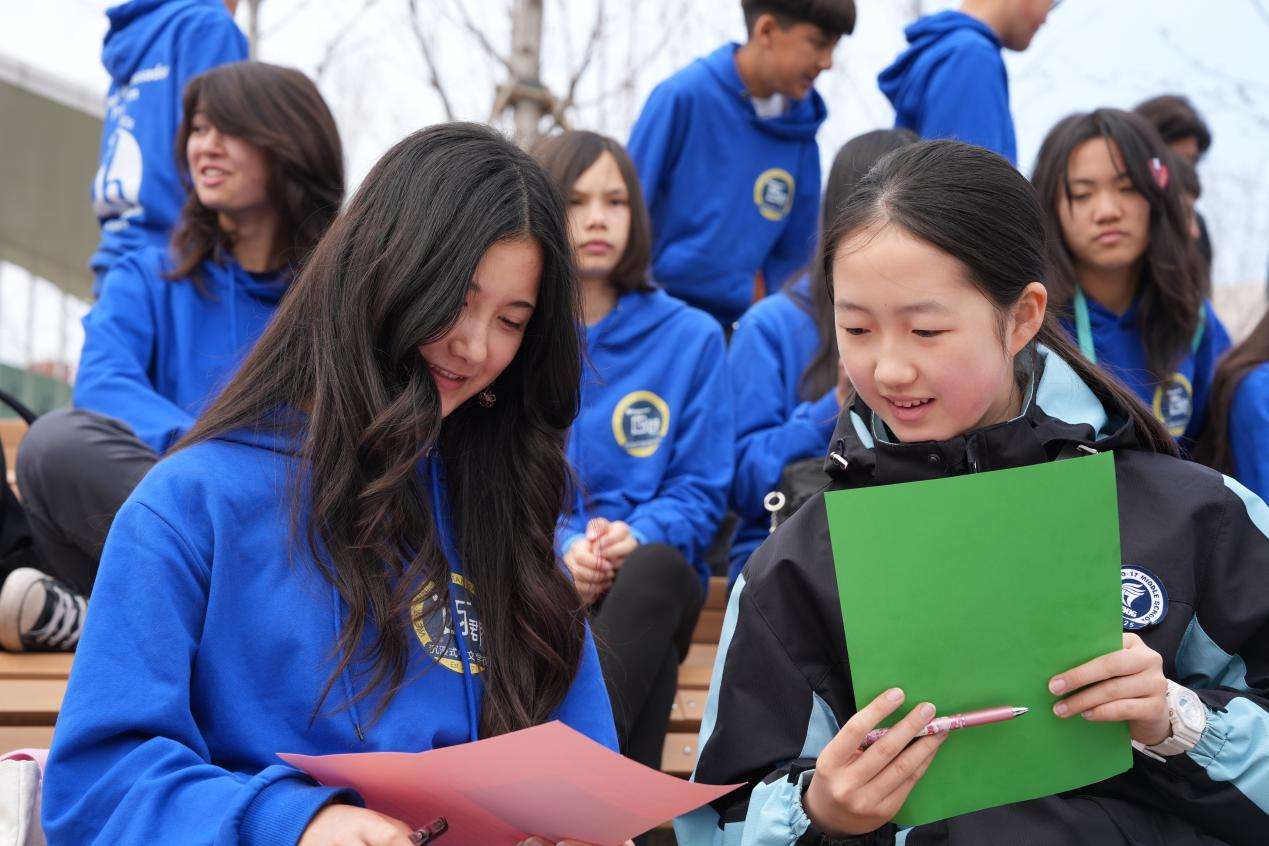 活动最后,中美青少年围坐在一起,以《春天》为题提笔写诗。其中一张卡片上,有人用中文和英文共同写下一行诗句:“我们在春天播种希望,也播种了未来。”
