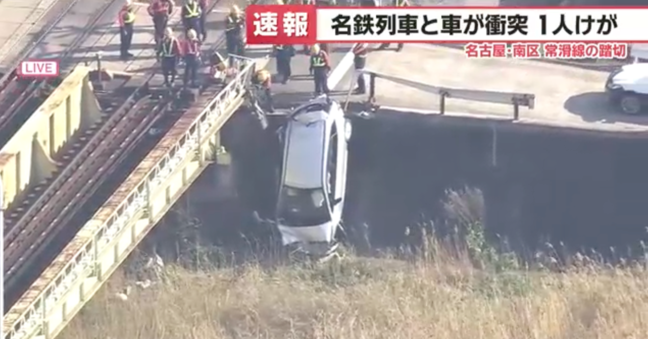 据名铁公司消息,事故发生在今日下午2时30分左右。一辆乘用车在冲破路边护栏后坠落,随后与名铁常滑线上行驶的一列列车相撞。据当地消防部门透露,涉事轿车内的一名60多岁男性司机受轻伤。幸运的是,该男子当时意识清醒,并已成功从受损车辆中自行爬出脱险。
