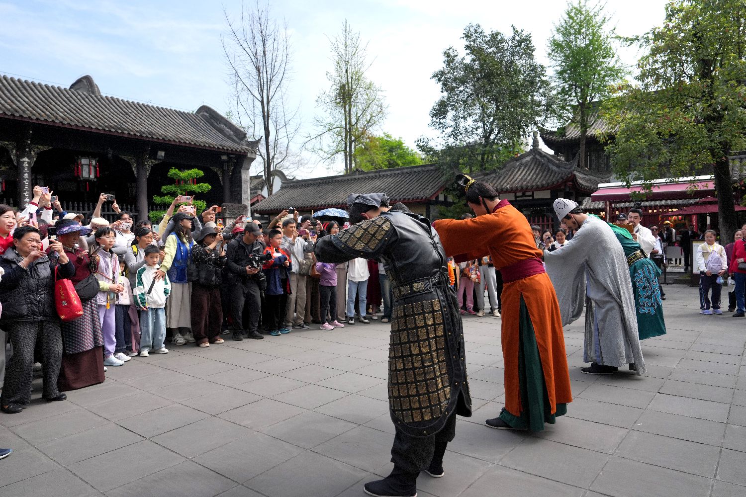 4月1日,四川成都,情景剧演出。当日,成都武侯祠博物馆举办以“春遇武侯 拜见丞相”为主题的清明春假系列文化活动。本次活动紧扣清明节气的人文内涵,打造可观、可感、可参与的三国文化全景场域,为广大市民与游客奉上一场兼具精神厚度与传播新意的春日文化盛宴。(中新社)