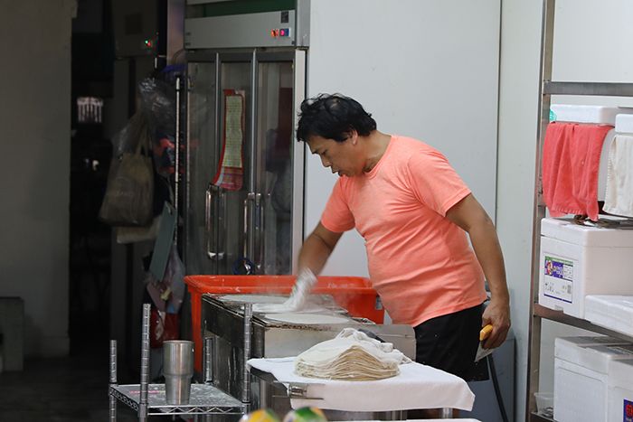 陈和锦表示,每年清明前后都是店内最忙的时期,前去购买饼皮和润饼的顾客非常多,备料会比平时多出四五倍。摊车前大排长龙,有顾客说:“快过节了,大家都要吃这一口。”