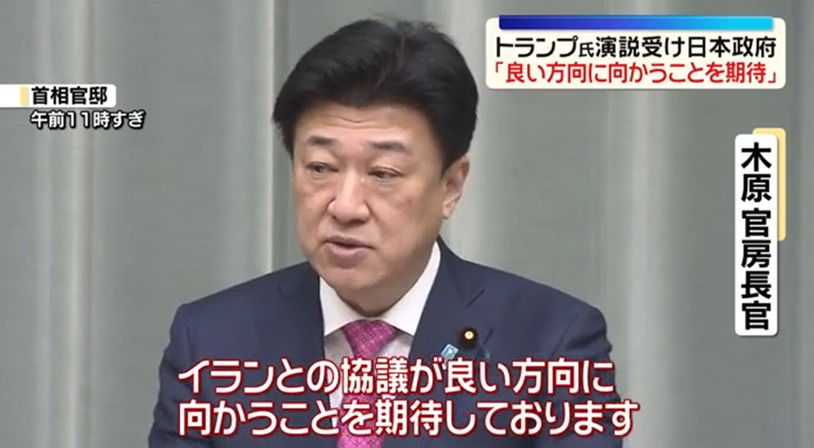 日本内阁官房长官木原稔在记者会上表示,日方认为通过对话解决问题至关重要,期待特朗普总统近日提及的与伊朗的谈判朝积极方向发展。木原虽避免直接评价演讲内容,但强调日本将继续为早日缓和局势作出不懈的外交努力。