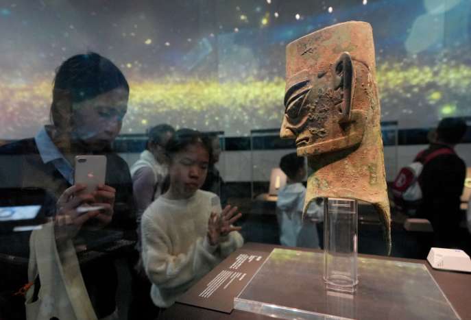 4月2日,成都市中小学春假第二天,学生们在成都博物馆参观。(图/中新社)