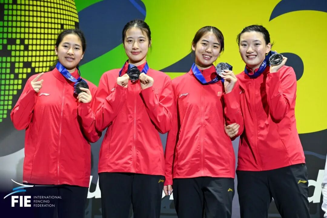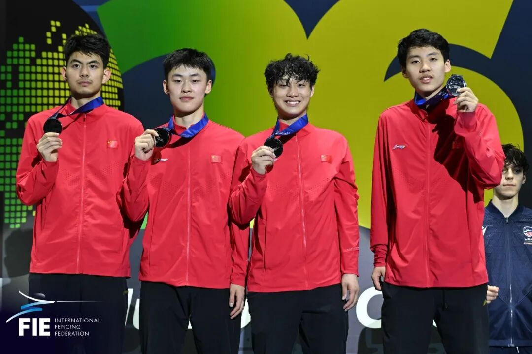 中国青年佩剑队男女团体齐夺银 暂居奖牌榜首位