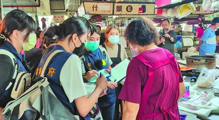 台湾高雄市发生集体食物中毒事件,受害人数增至67人。图为高雄市卫生局5日前往正义市场摊位稽查。(图/台北中时新闻网)