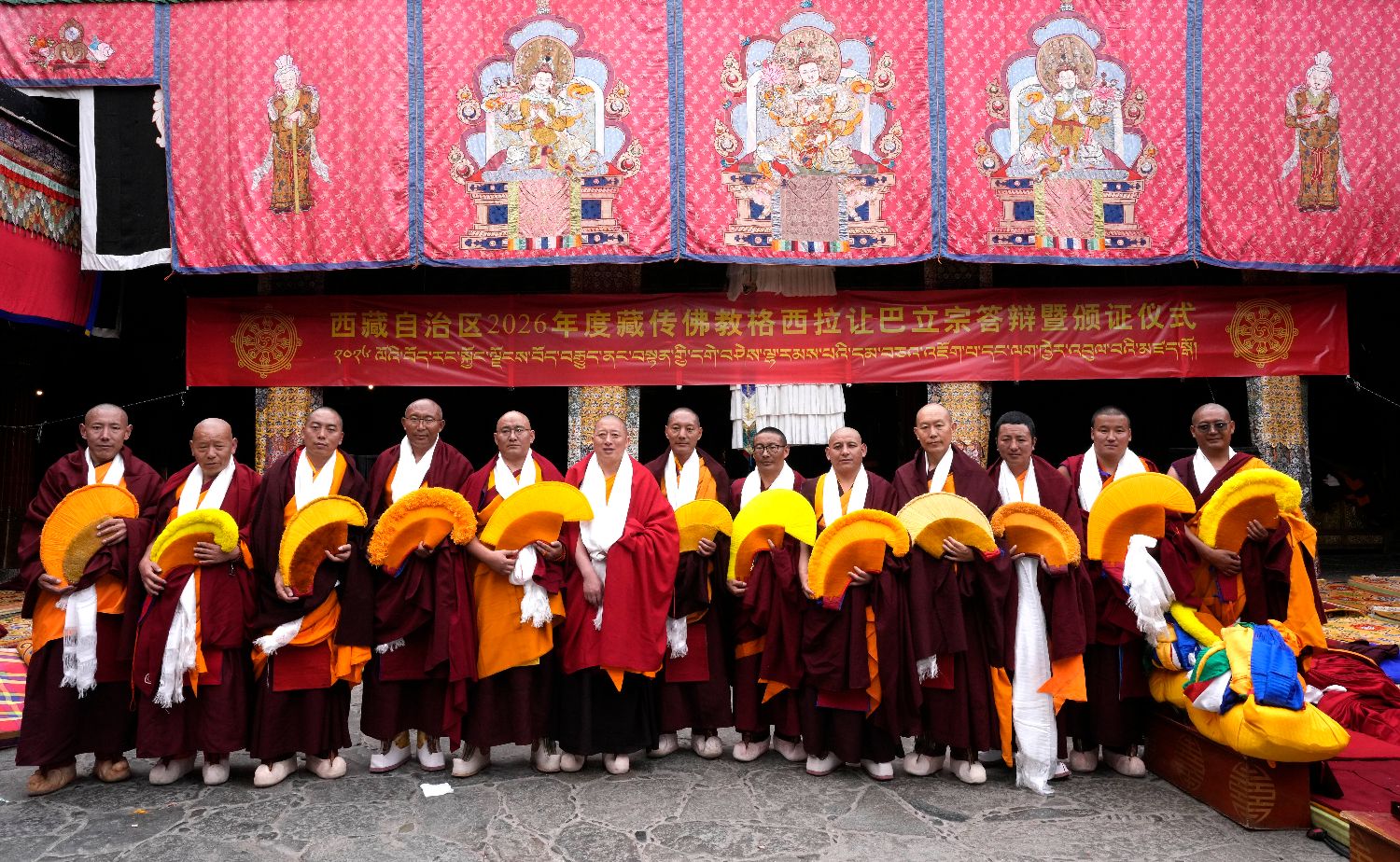 4月5日,2026年度藏传佛教格鲁派学经僧人考核晋升格西拉让巴学位立宗答辩暨颁证仪式在拉萨大昭寺举行。13名考僧通过立宗答辩,晋升藏传佛教格西拉让巴学位。格西拉让巴学位是藏传佛教格鲁派显宗传统教育最高学位。截至目前,共215名高僧获得格西拉让巴学位。