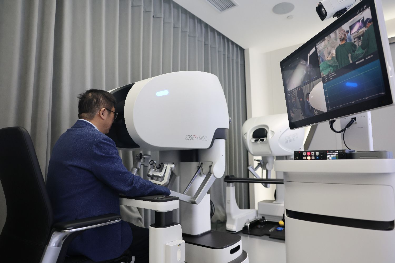 图为3月20日,中国科学院院士张旭在华西国际机器人远程手术控制中心,通过手术机器人为2000公里外的厦门患者进行泌尿外科手术。(图/中新社)