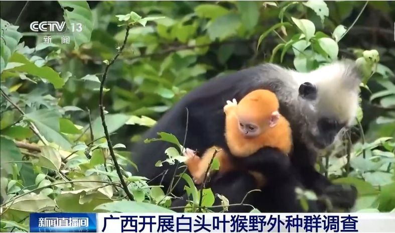白头叶猴,中国国家一级保护野生动物,也是中国特有的珍稀物种。(图/中国央视新闻视频截图)