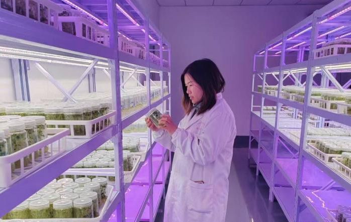 在内蒙古自治区乌兰察布市农林科学研究院的组培中心,一排排组培瓶苗整齐地陈列在培养架上,嫩绿的脱毒苗在灯光下泛着油亮的光泽。林团荣弯下腰,透过玻璃瓶壁仔细端详着这批马铃薯脱毒苗的长势。这株看似普通的脱毒苗,是她和团队花了十多年心血选育出的“宝贝”——蒙乌薯6号。2024年,这个品种以30万元(人民币,下同)的价格授权给一家公司,目前已进入量产种植阶段,亩产增效500元以上。