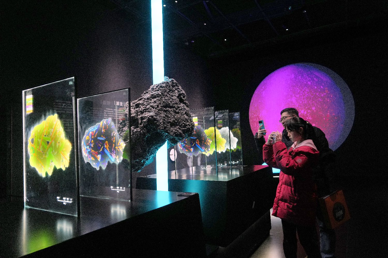 1月30日,中国首个以月壤科学为核心的沉浸式科普展览——“阅壤——月壤主题沉浸式科普展”,在成都自然博物馆(成都理工大学博物馆)正式对公众开放。(图/中新社)