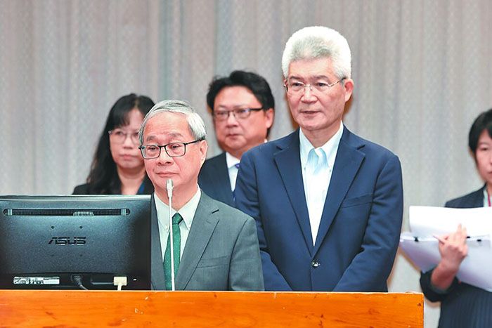 图为台文化主管部门负责人李远(左)、“公视”董事长胡元辉(右)在立法机构接受立委质询。(图/台北中时新闻网)