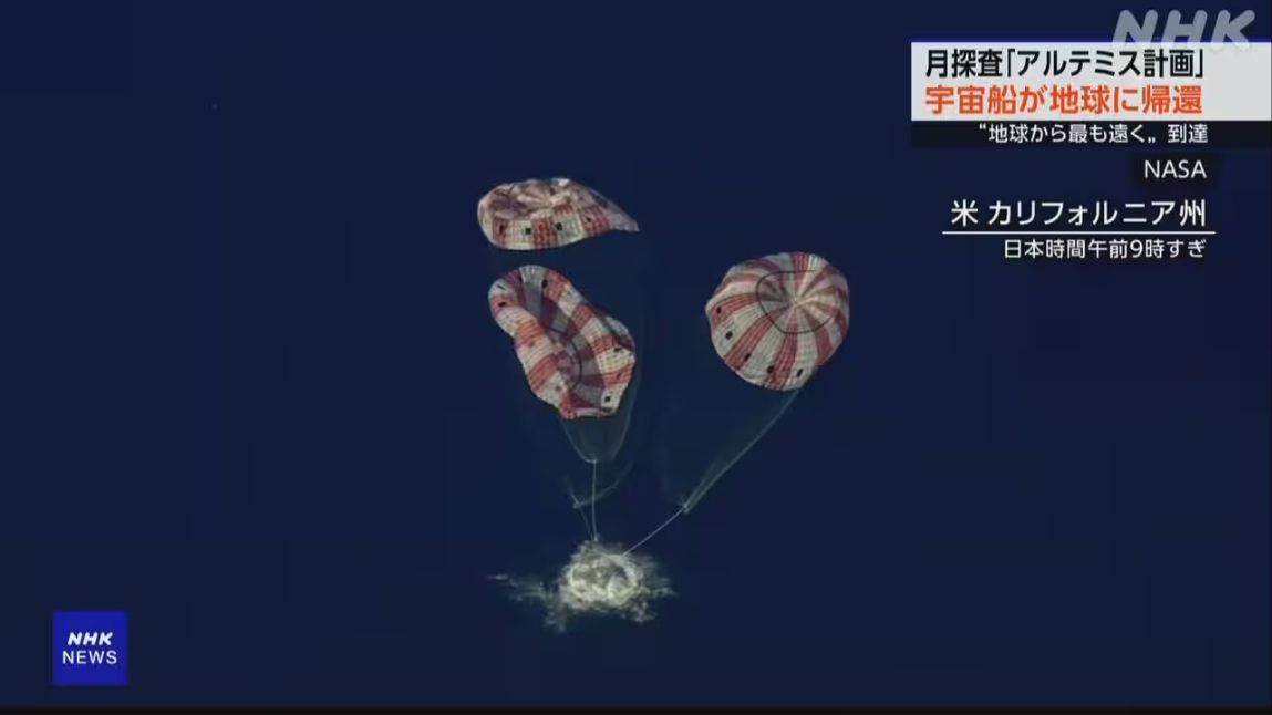 (亚太快讯消息)由美国主导的国际探月项目阿尔忒弥斯计划中,搭载宇航员绕飞月球背面的飞船,于日本时间11日上午9点多在太平洋成功溅落,平安返回地球。