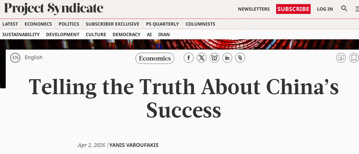 中国日报网4月10日电世界报业辛迪加网站近日刊登希腊前财政部长、经济学家亚尼斯·瓦鲁法基斯的文章《讲述中国成功的真相》称,应客观地看待中国经济成功的真实原因,只有基于事实的对话,才能避免灾难性的“新冷战”升级。讲述中国成功的真相,不是为了美化任何一方,而是为了维护和平。