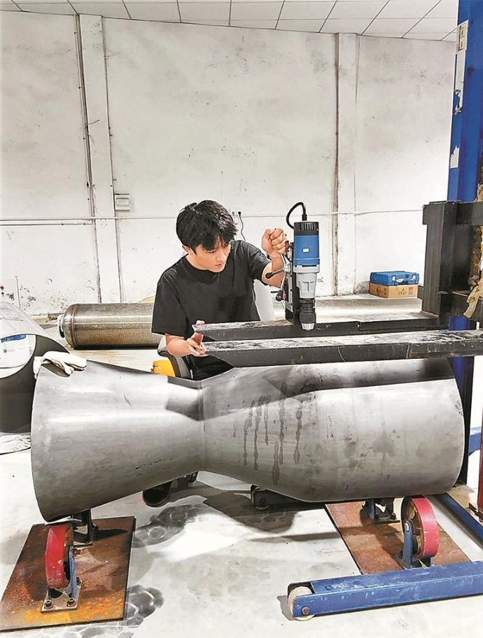 卢驭龙对火箭发动机进行调整。(图/《深圳特区报》)
