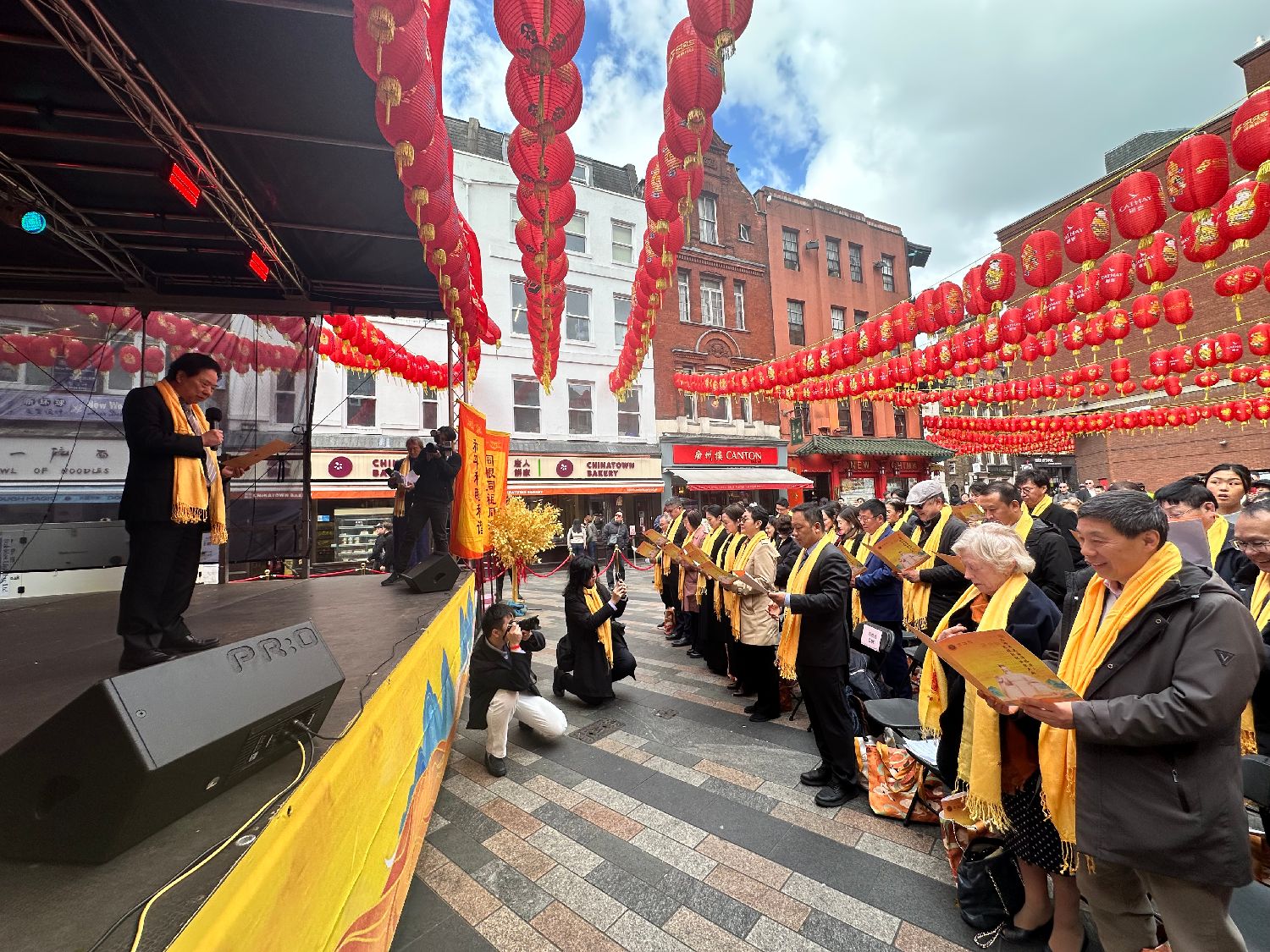 当地时间4月12日,丙午年黄帝故里拜祖大典英国同拜活动——丙午年英国华侨华人恭拜轩辕黄帝大典在伦敦唐人街举行。