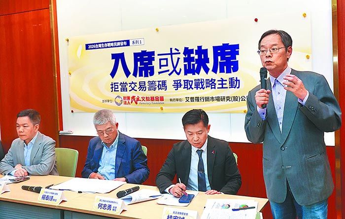 台湾民间智库“民主文教基金会”14日召开民调发布会。(图/台北中时新闻网)