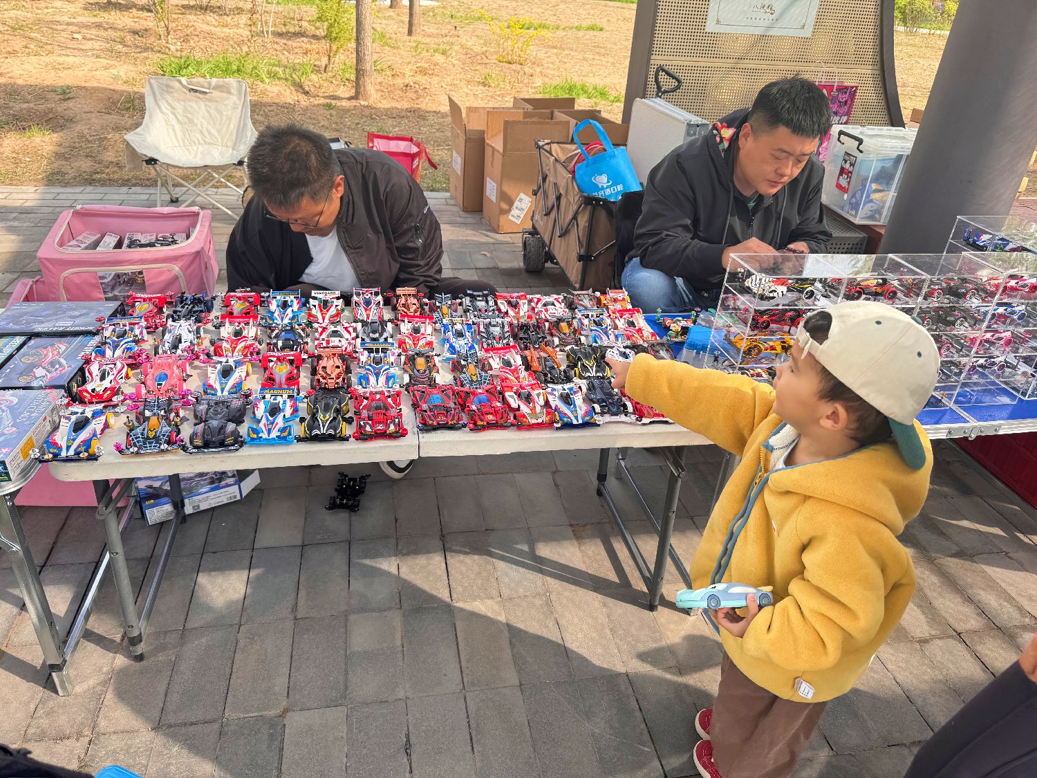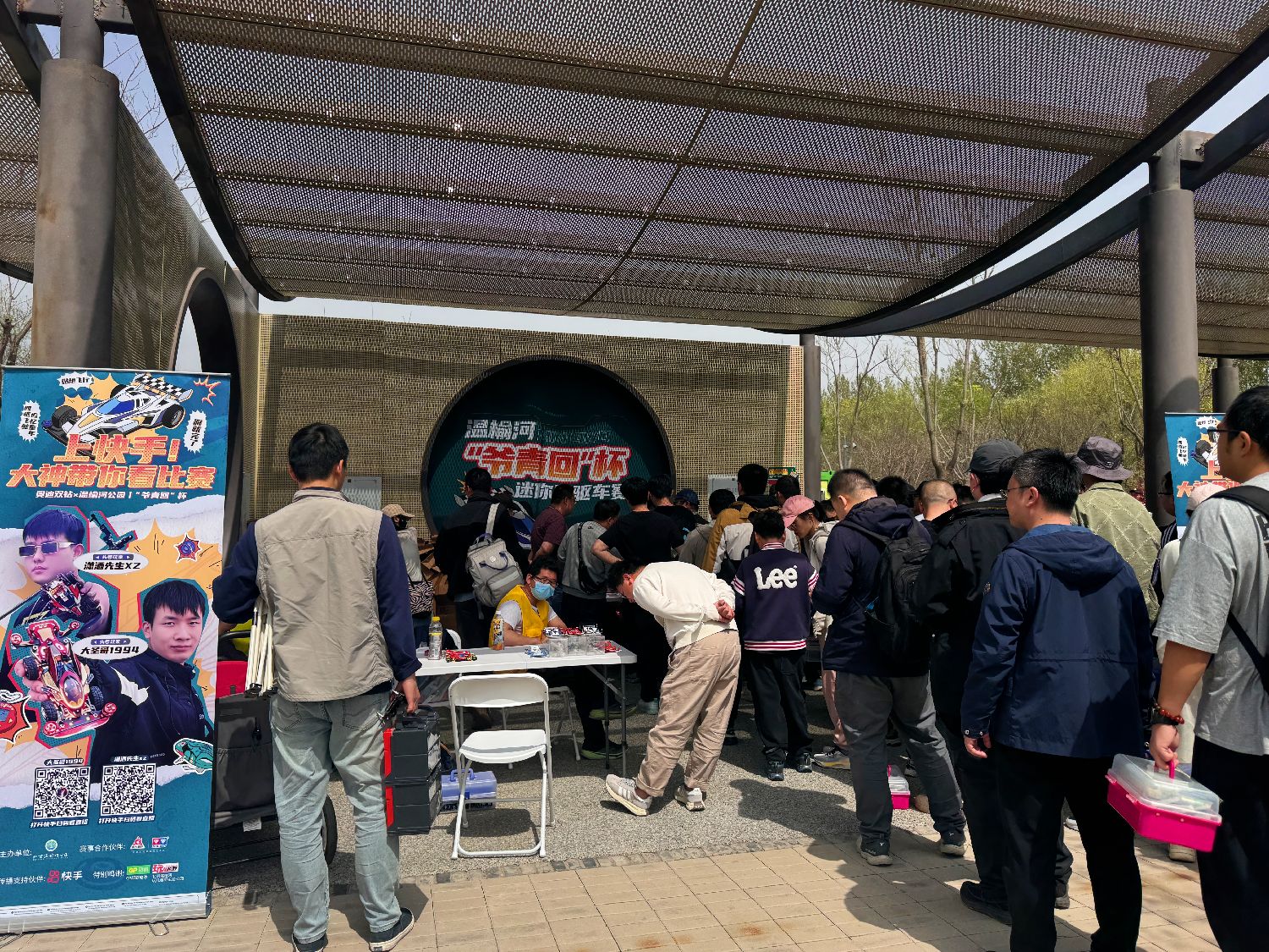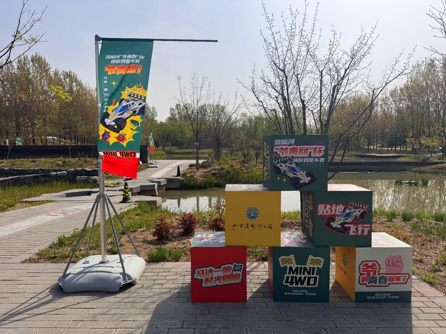 4月12日,北京温榆河“爷青回”杯迷你四驱车春季赛正式开启。北京温榆河公园举办的这场比赛,让“80后”“90后”们重拾童年记忆,也让现在的孩子们感受到线下竞技的纯粹快乐,不同年龄的爱好者因共同的热爱,在赛道上相聚、竞速、欢笑。图为北京温榆河公园一景,园内设置了四驱车比赛相关摆设。(凉子摄)
