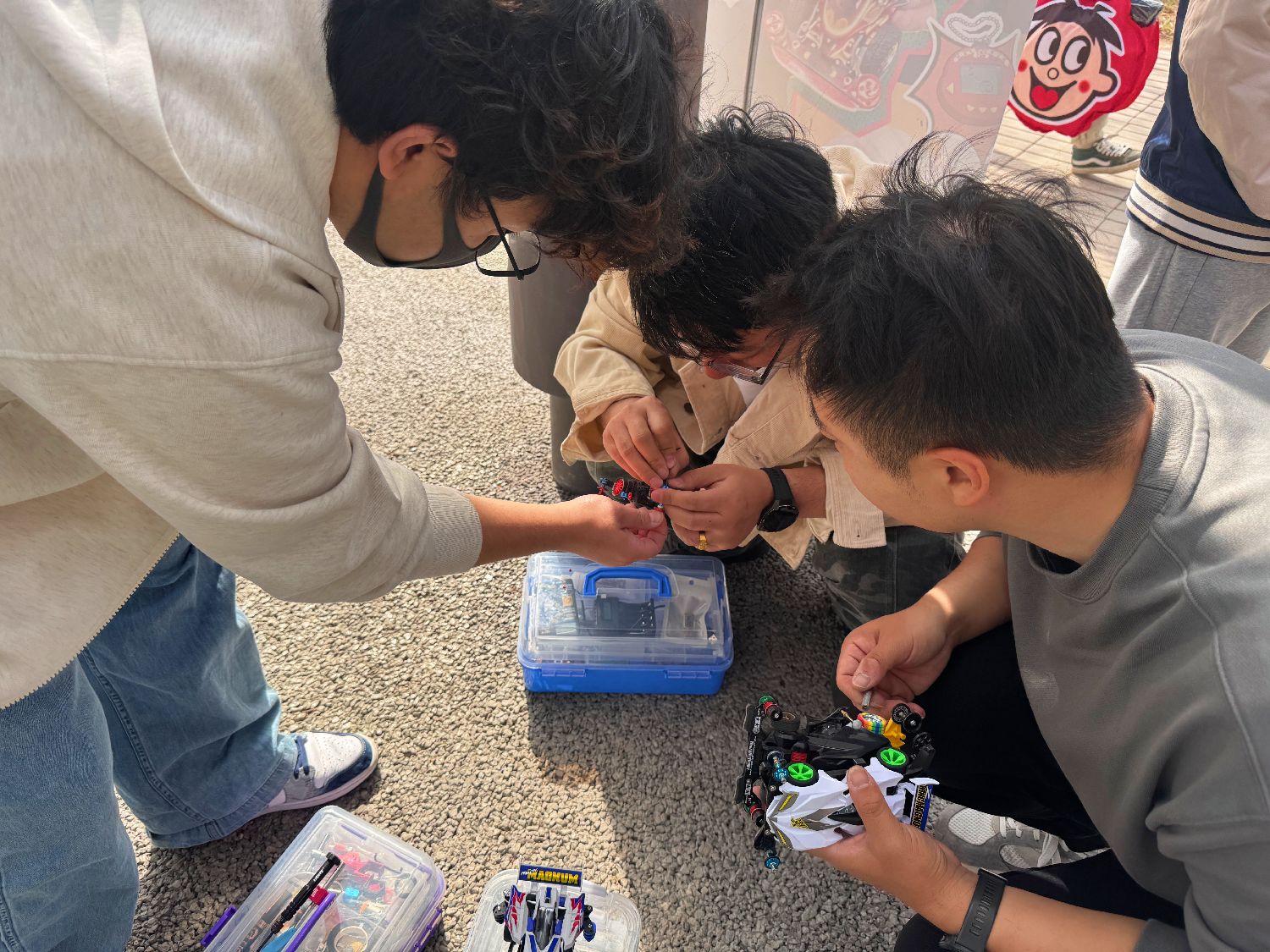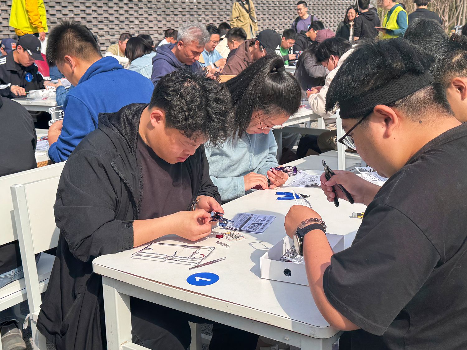 图为比赛当日上午开展的“团队拼装竞速赛”现场,选手们分组进行四驱车拼装,随后使用拼好的车进行竞速赛。(凉子摄)