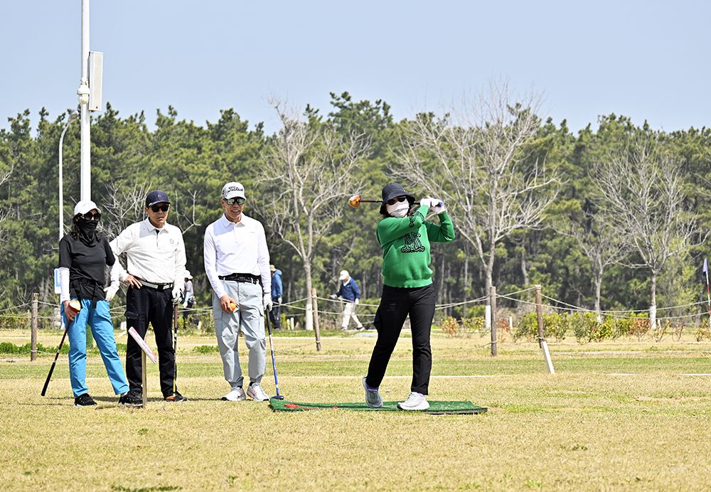 4月14日至15日,山东威海经开区东浦湾健步球场上,50余名韩国游客头戴遮阳帽、手持球杆,从腰间装备包中取出彩色小球,四五人一组分组竞技。瞄准、挥杆、击球,彩球划出弧线,精准落入远处球洞。