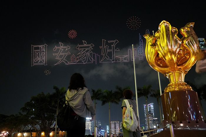 全民国家安全教育日大型无人机表演点亮香港夜空
