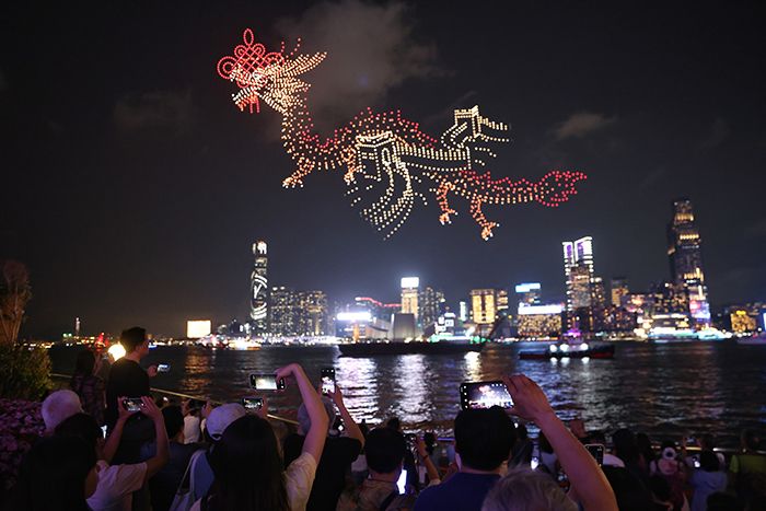在金紫荆广场附近观看了表演的香港市民周先生说:“这是我第一次看无人机表演,感到十分震撼。现在香港的安全程度越来越高,大家可以更加专心地经营自己的生活和事业。”