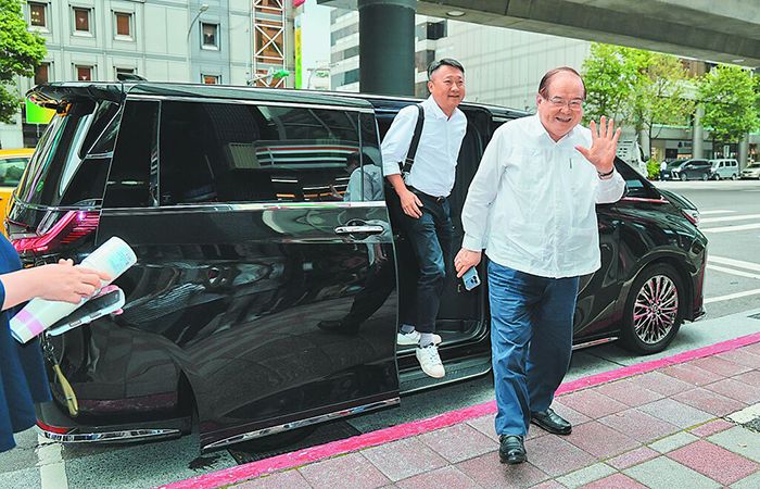 国民党副主席兼秘书长李乾龙被爆出座驾遭安装追踪器,李乾龙(前)15日证实此事,但没有报警。(图/台北中时新闻网)