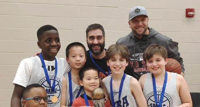 2025年3月,王宣翔(后排左二)与队友赢得2025年度萨斯卡通市青少年篮球联赛5-6年级组冠军。(图/中新网)