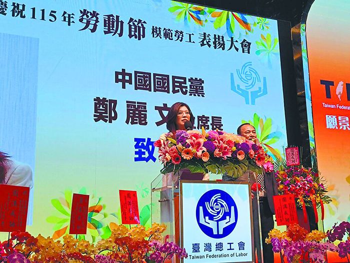 台湾总工会16日在台中举办“庆祝劳动节模范劳工表扬大会”,郑丽文受邀出席活动。在致词中,郑丽文表示,台湾经济发展离不开劳工长期付出,未来对劳动力的定义要改写,如何让AI成为辅助劳工的工具,而不是全面取代人力,是重要课题。