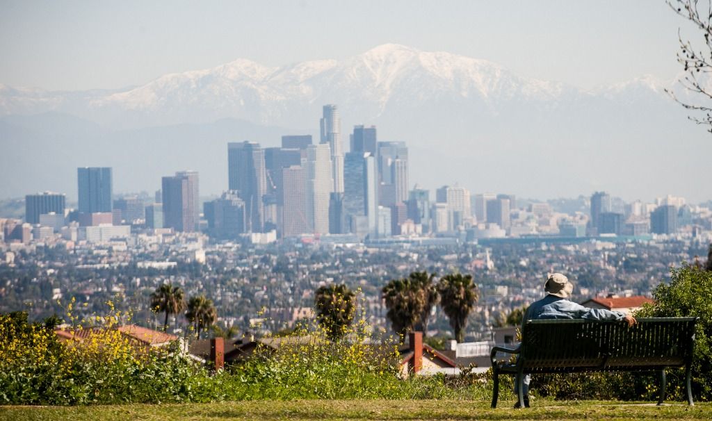 图为从洛杉矶肯尼思·哈恩公园远眺洛杉矶市区。(图/新华社)