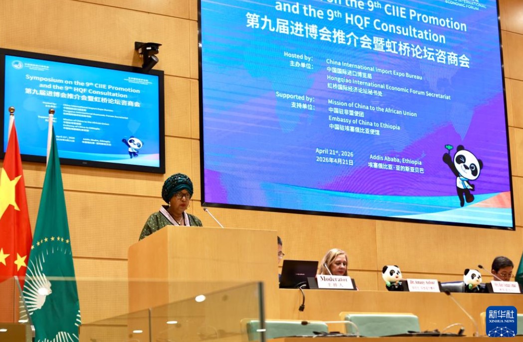 中新社亚的斯亚贝巴4月22日电(记者孙翔)第九届中国国际进口博览会(进博会)推介会暨虹桥国际经济论坛(虹桥论坛)咨商会21日在埃塞俄比亚首都亚的斯亚贝巴的非洲联盟(非盟)总部举行。来自非盟、联合国非洲经济委员会、相关企业及商协会的80余名代表参加活动。