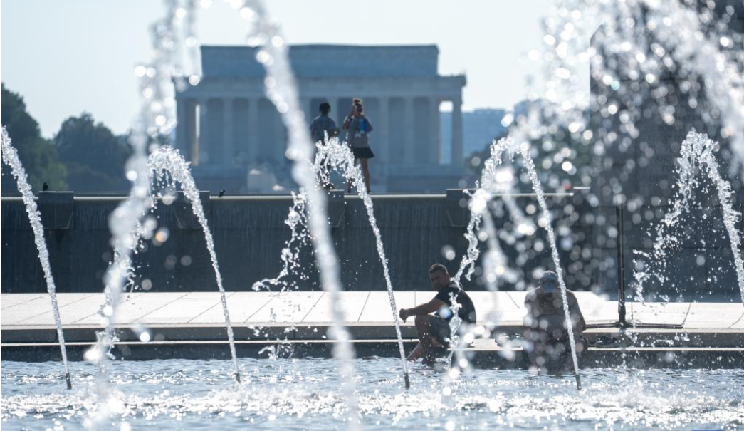 图为人们在美国首都华盛顿一处喷泉边休闲。(图/新华社)