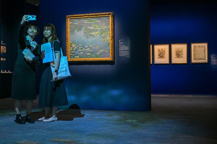 展览引领观众进入“造园”“游园”“赏园”三重意境,精选展品包括文徵明的《兰亭修禊图》、文伯仁的《南溪草堂图》、莫奈的《睡莲》、张大千《八德园迎客径》等。