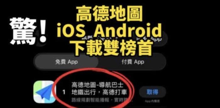 高德地图成台湾App下载的双榜首。(图/社交媒体截图)