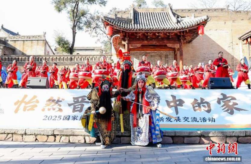 “怡然晋中 心中的家”2025国家级文化生态保护区创新发展交流活动27日在山西省介休市张壁古堡启幕。图为活动上的非遗展演。(图/中新网)