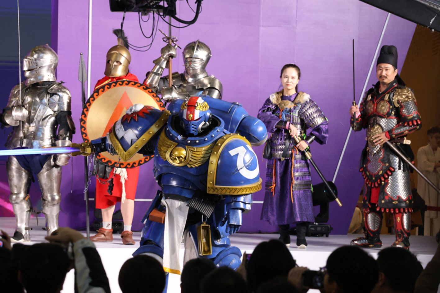 图为中式铠甲爱好者在展示,包括北魏、唐朝、宋朝的铠甲。(上海《新闻晨报》)