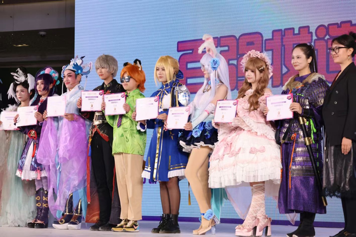 10月26日,首届上海市民文化节妆造大赛决赛暨颁奖典礼在上海长风大悦城举行。决赛现场,千余名妆造爱好者以“国潮+二次元”为灵感,展示国风造型、还原动漫角色等,将传统艺术与现代潮流融合,让观众沉浸式感受跨次元文化魅力。