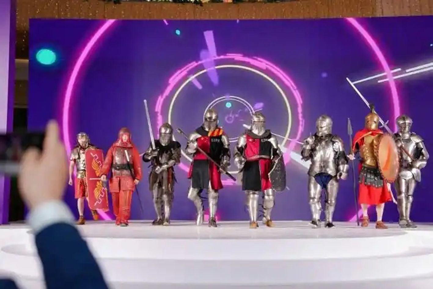 图为参与重装备展示的选手,其中有中世纪骑士的盔甲。(上海《新闻晨报》)