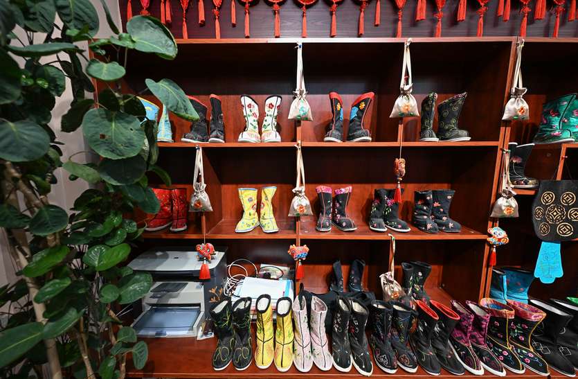 深秋时节,内蒙古兴安盟的图什业图亲王府内,两位绣娘吸引游客的目光。只见她们指尖轻牵细线,针尖在绣面上游走如飞,一朵朵牡丹逐渐“绽放”。