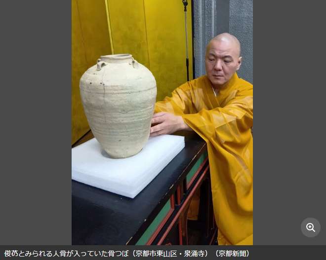 图为本次发现的藏骨器。(图/《京都新闻》报道截图)