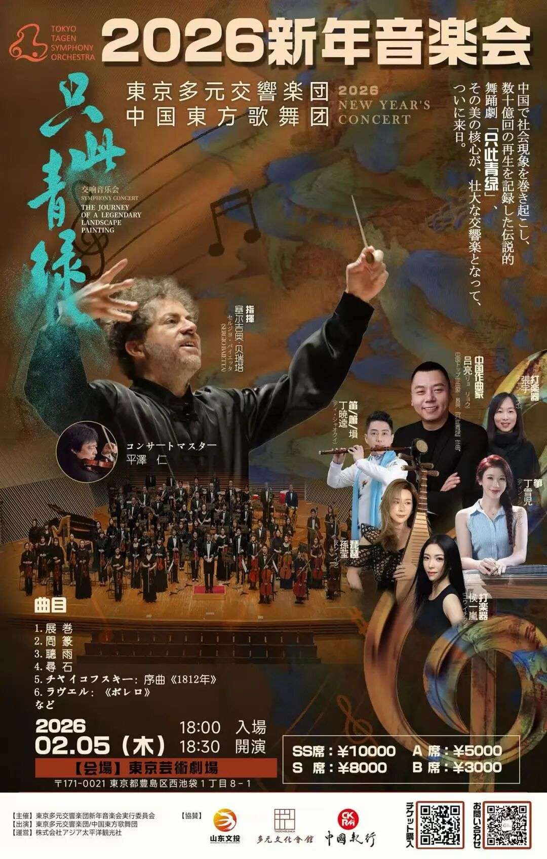 当音符化作色彩,当旋律描摹山河——古老的青绿将在东京的舞台上再度流光溢彩。这不仅是一场音乐会,更是一场跨越千年的文化盛宴。在交响与传统乐器的和鸣中,2026年的新年序章,必将以最动人的姿态缓缓奏响。