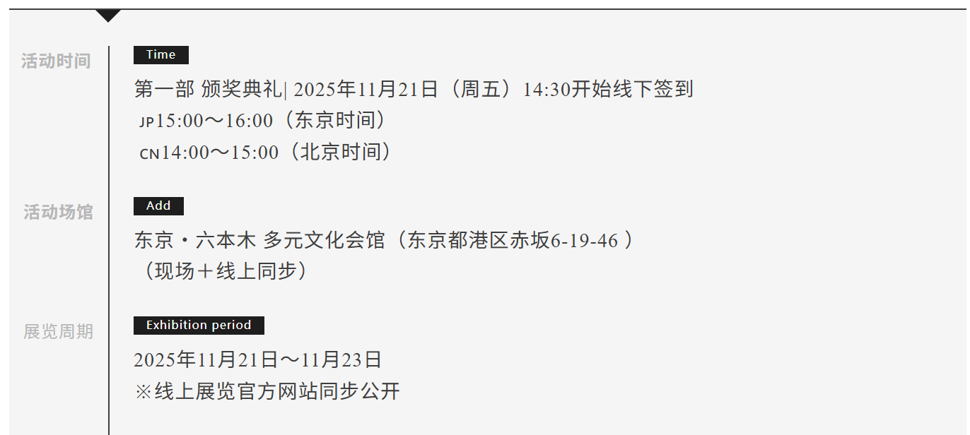 我们诚挚邀请你,于11月21日走进六本木的多元文化会馆,一同见证本届大赛的获奖揭晓与亚洲创意力量的交汇时刻。
