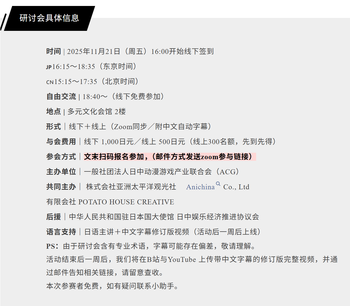 山野边一记则将从投资与市场角度,解读动画项目的融资、版权流通与中日合作趋势。