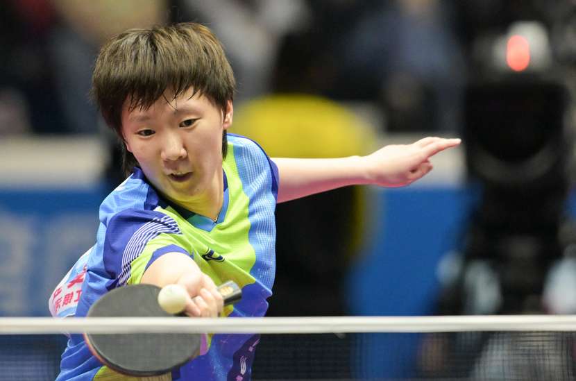 11月16日,第十五届全国运动会乒乓球女子单打决赛在澳门举行,图为王曼昱在比赛中。(图/中新社)