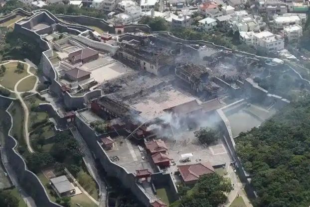 2019年10月31日在冲绳那霸航拍的火灾过后的琉球王国都城遗址首里城。(图/新华社)