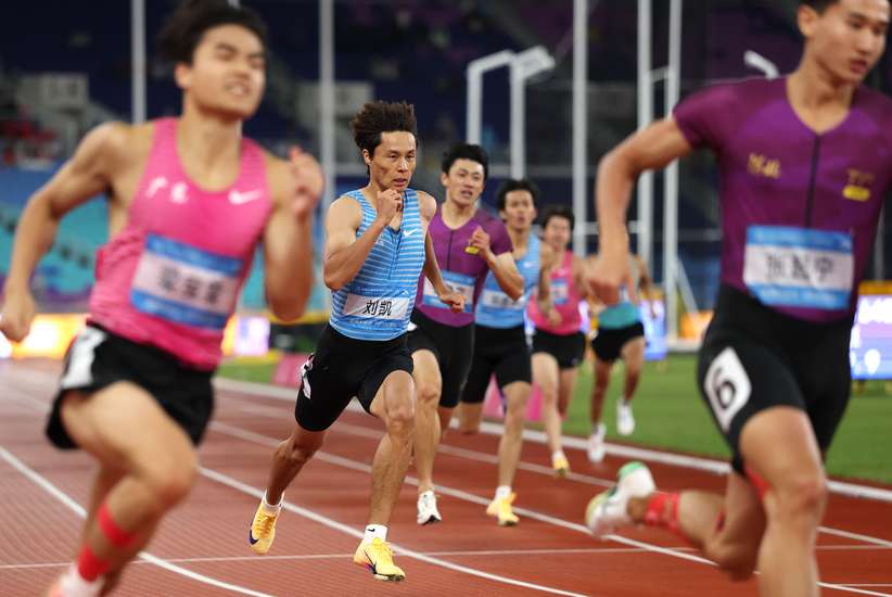 第十五届全运会田径男子400米决赛18日在广东省奥体中心体育场举行。山东队刘凯(左二)以45秒77夺得金牌。(图/中新社)