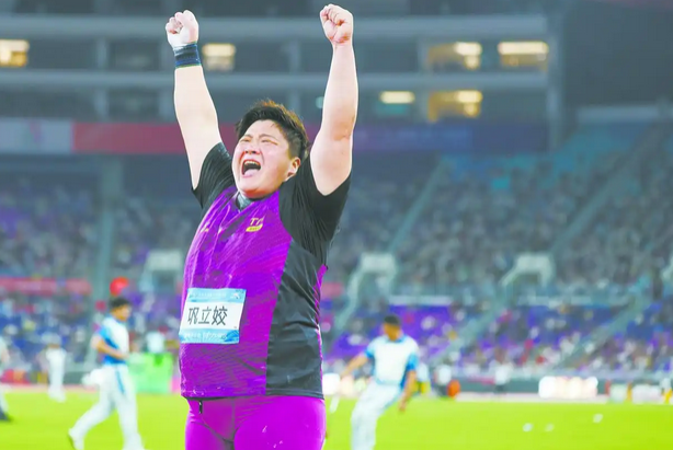 同样在第五次全运征程中登顶的还有36岁的东京奥运会冠军巩立姣。16日晚,她以19米68夺得女子铅球金牌,实现全运会五连冠。赛后,巩立姣宣布就此告别25年职业生涯。这位铅球名将用20余载的坚守与热爱,书写了传奇人生。