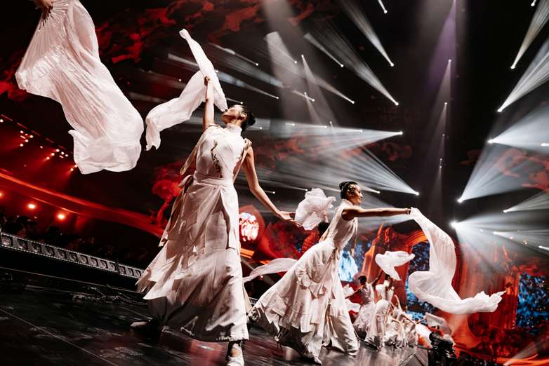 走进“英雄·外滩”,只见45米伸展舞台,1032盏移动灯具,374平方米全新LED墙,共同构成了“纸上幻境”舞台。本次演出舞台以“纸”为灵感,如一幅徐徐展开的东方卷轴,所有文字与纹样均由艺术家亲手绘制。