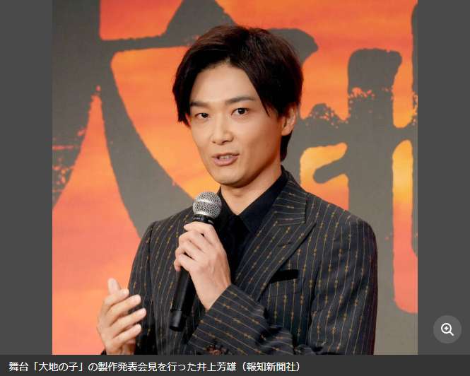 图为出席舞台剧《大地之子》制作发布会的演员井上芳雄。(图/报知新闻社)
